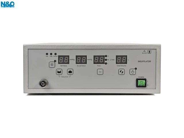 CO2 Insufflator consists of power transformer, microcomputer controller main board, display board, CO2 pressure reducing valve, solenoid valve, gas pipeline and gas filter. The CO2 Insufflator is used with the CO2 cylinder to provide visual conditions and surgical space for laparoscopic surgery. |